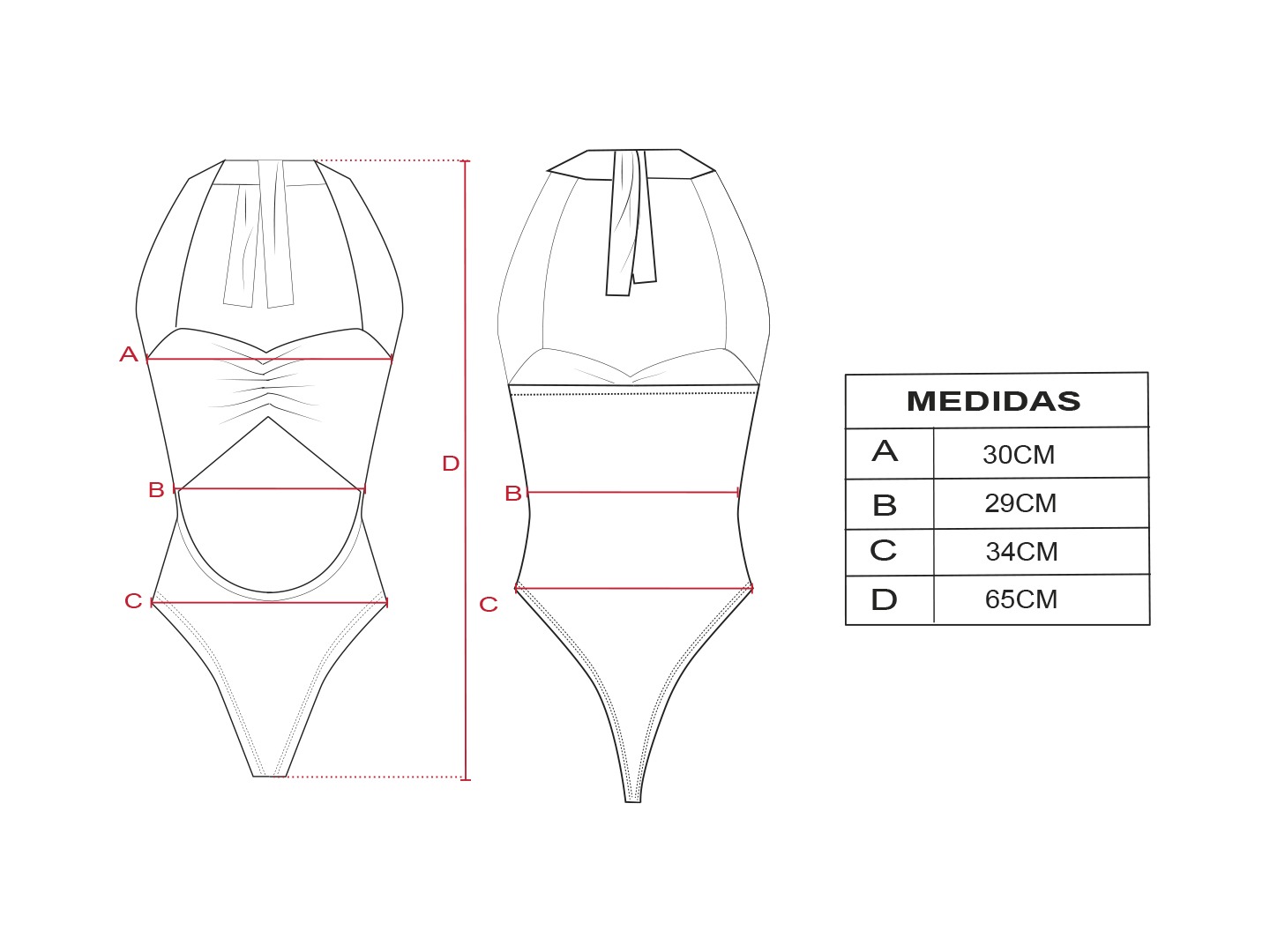 Body (lycra) halter con lazo para atar al cuello, detalle de abertura y frunce