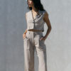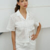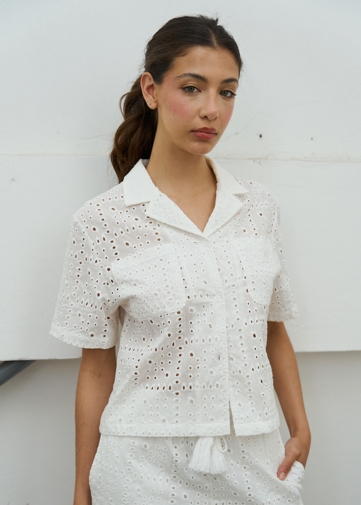 Camisa de broderie, cuello camisero clásico, con botones y detalle de bolsillos delantero // MODELO IMPORTADO