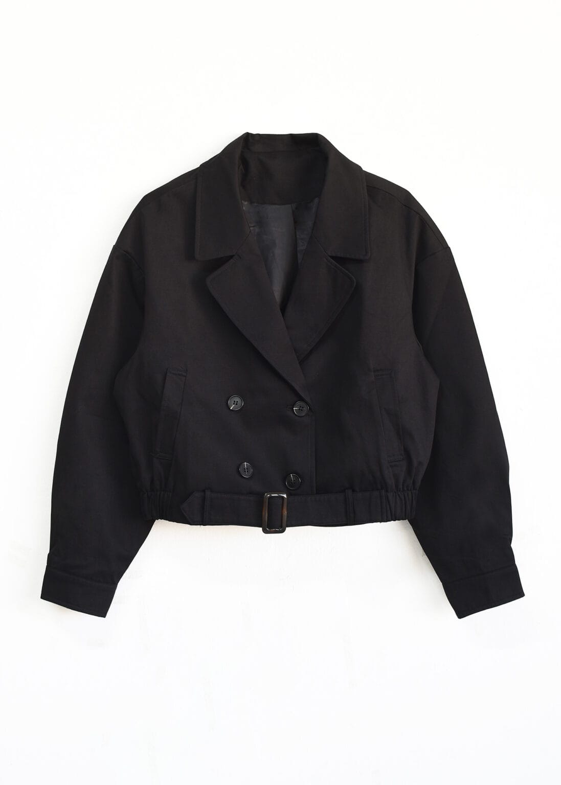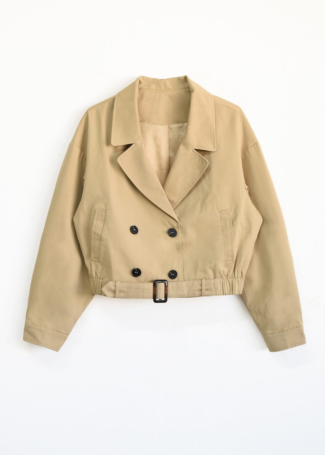 Campera trench corto con cinto regulabe, elástico en la cintura (IMPERMEABLE)