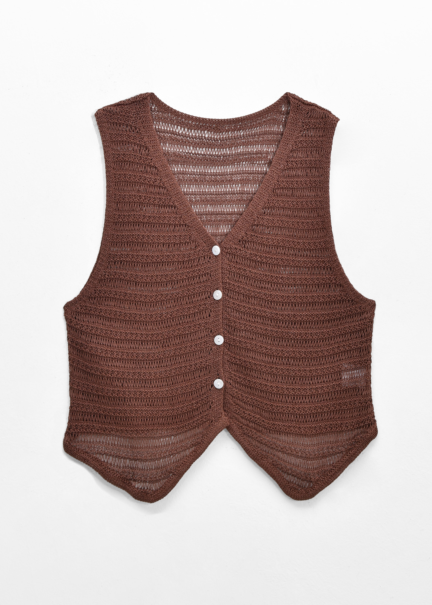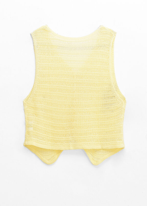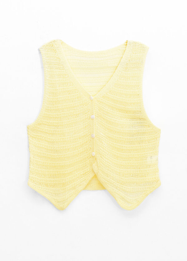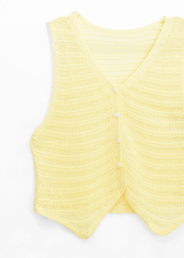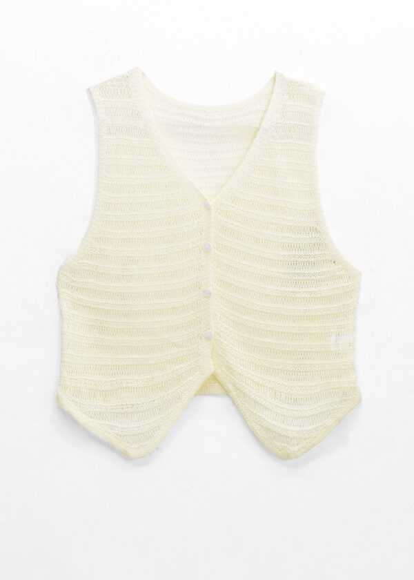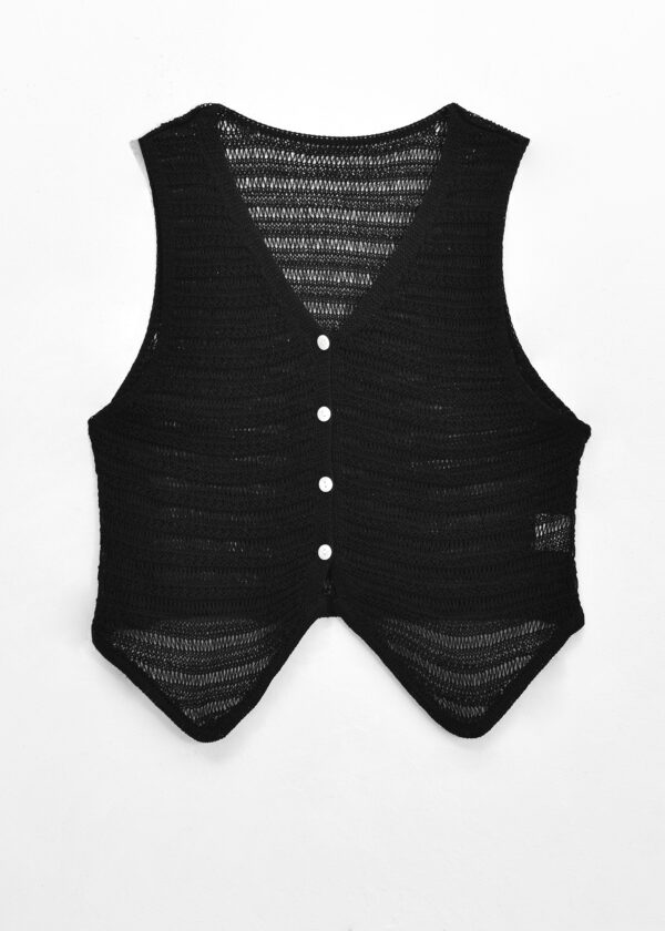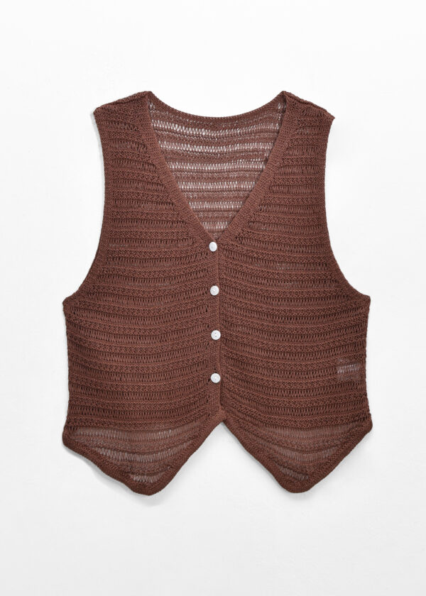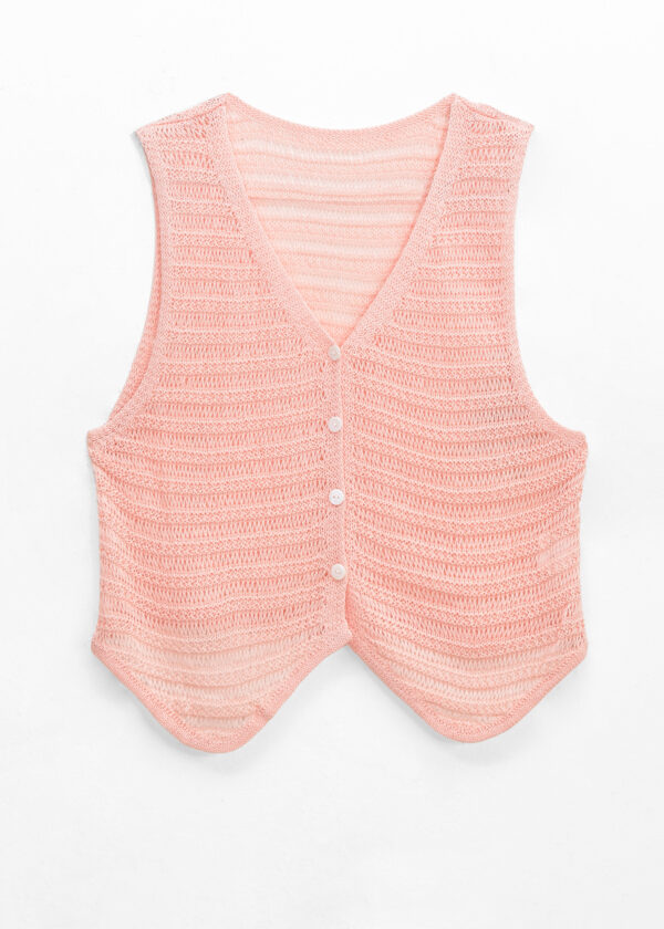 Chaleco de tejido escote en V, botones al frente y detalle de tejido calado // MODELO IMPORTADO