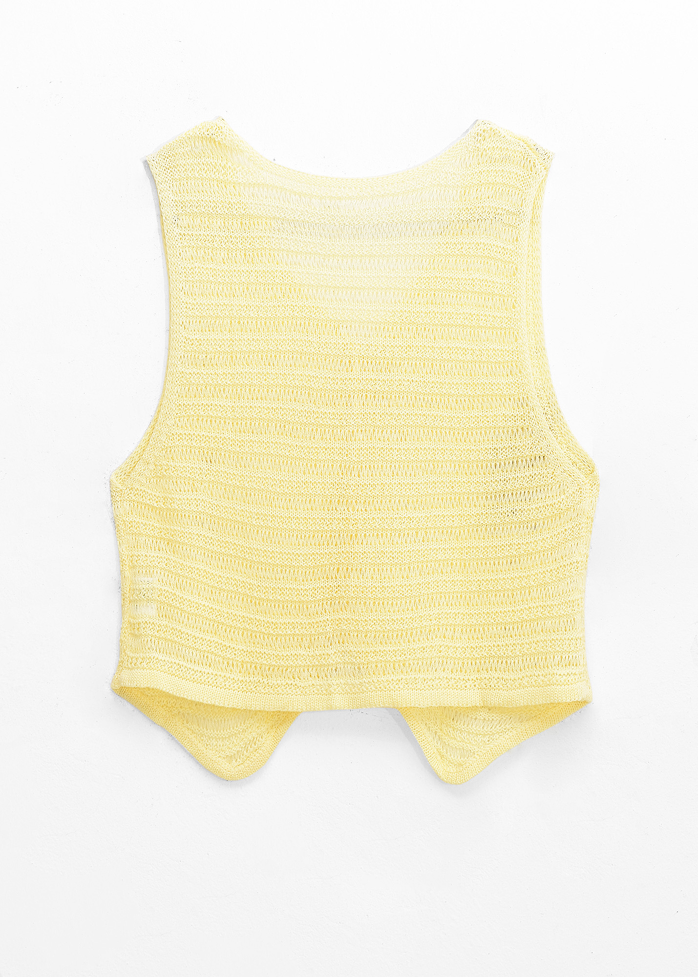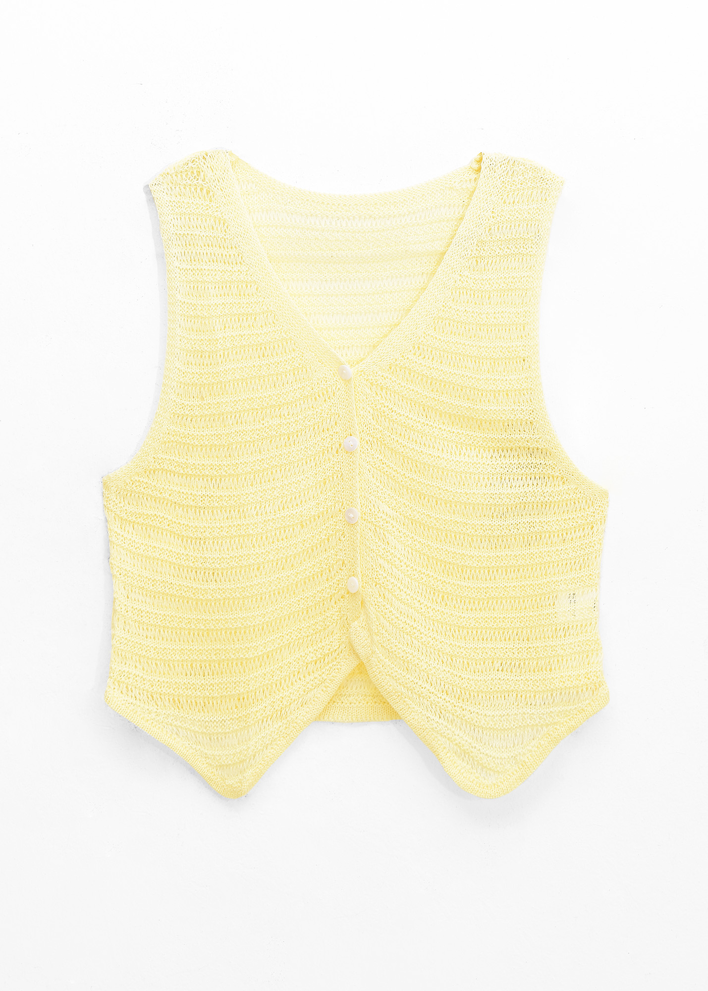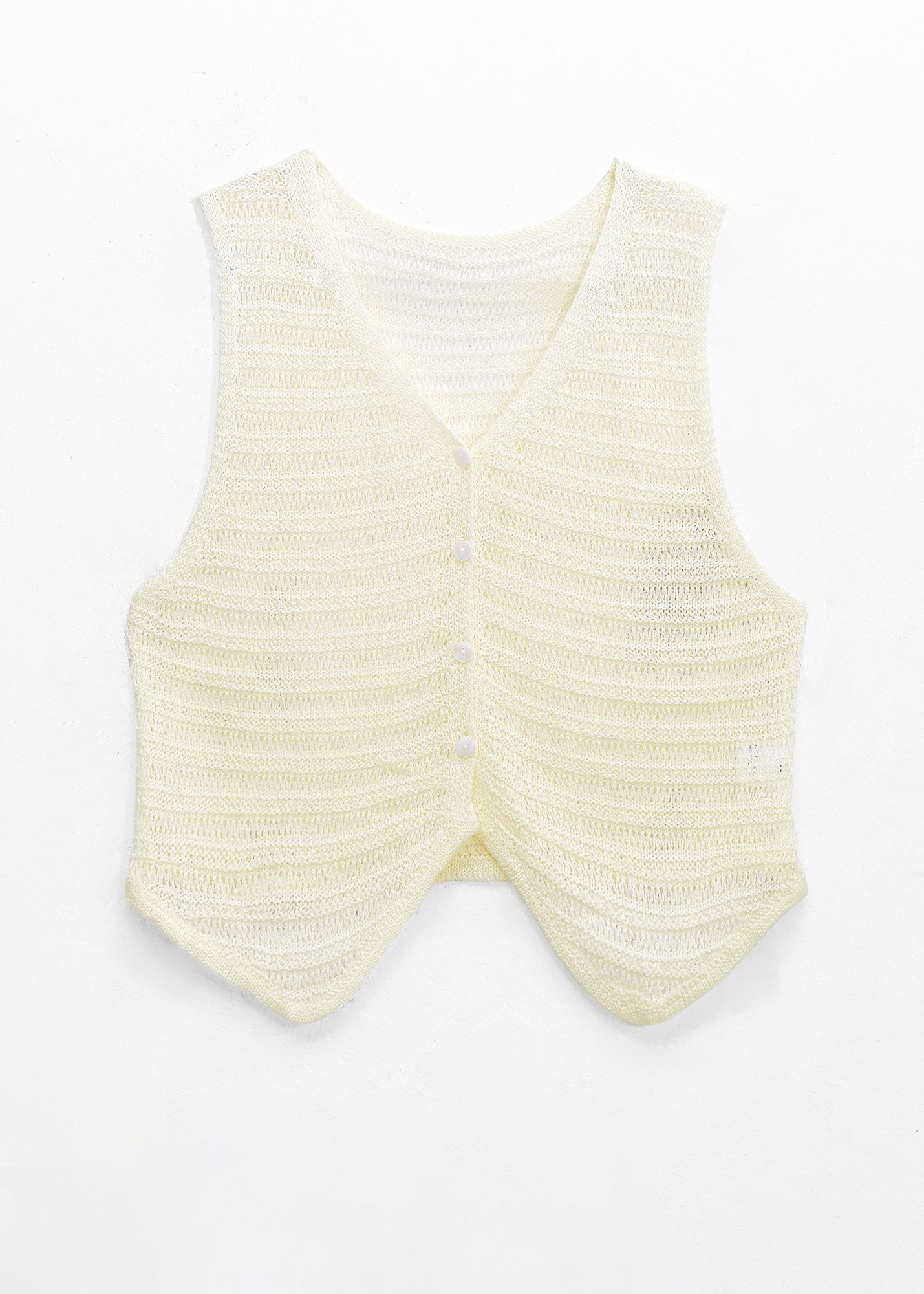 Chaleco de tejido escote en V, botones al frente y detalle de tejido calado // MODELO IMPORTADO