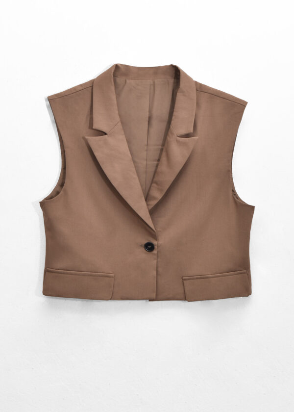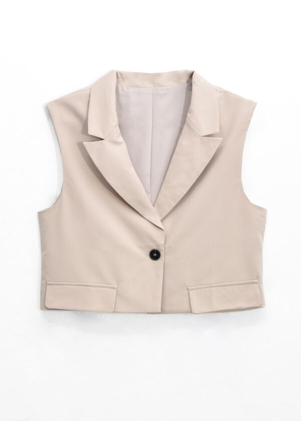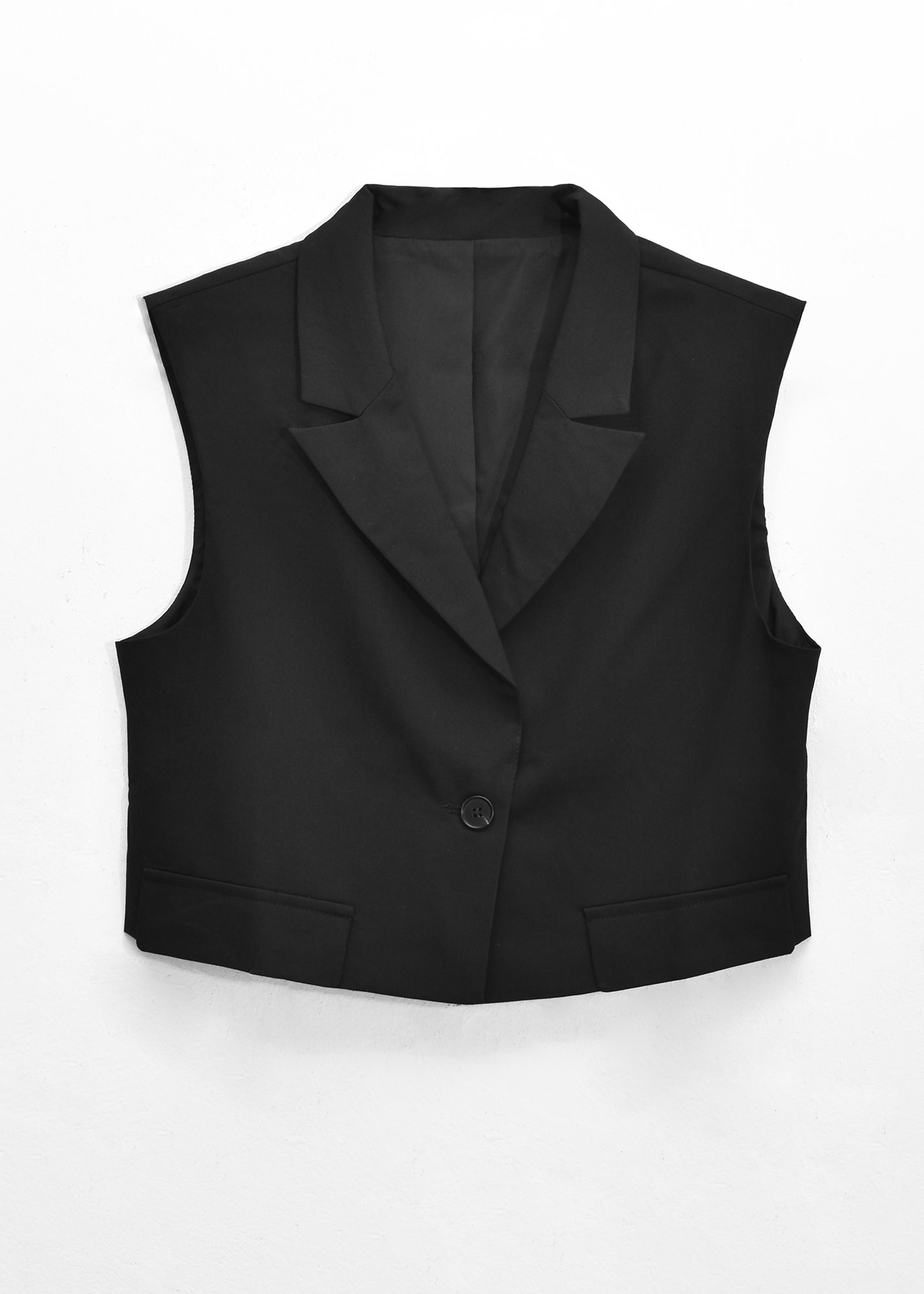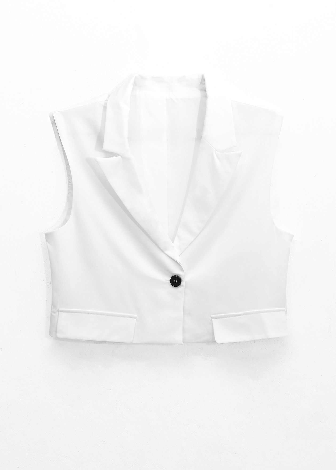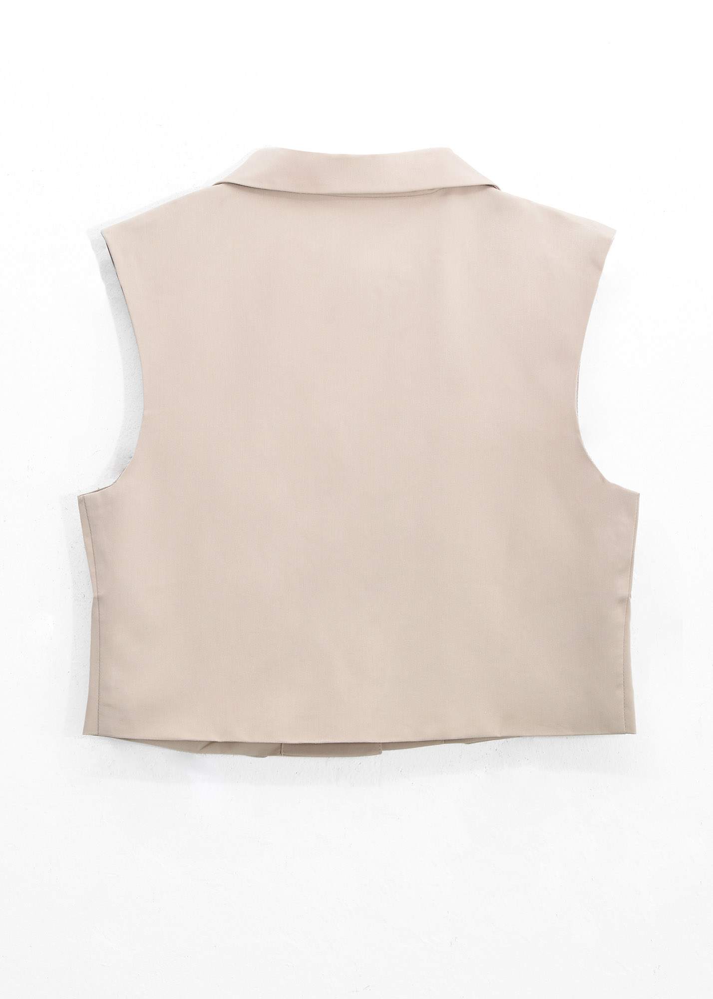 Chaleco cropped top, detalle de solapas decorativas, incluye forrería // MODELO IMPORTADO