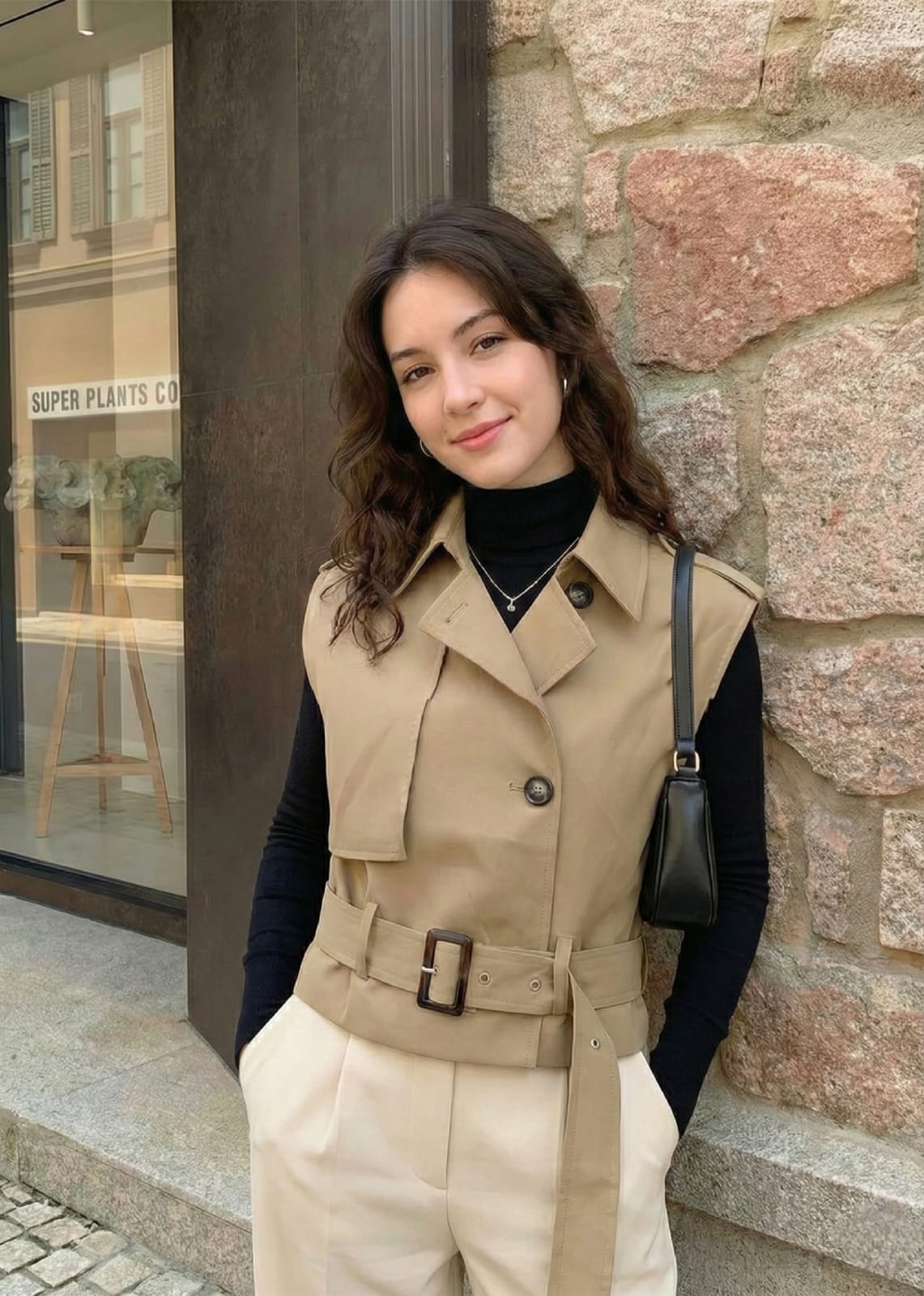 Chaleco tipo trench, con cinto ajustable (IMPERMEABLE)