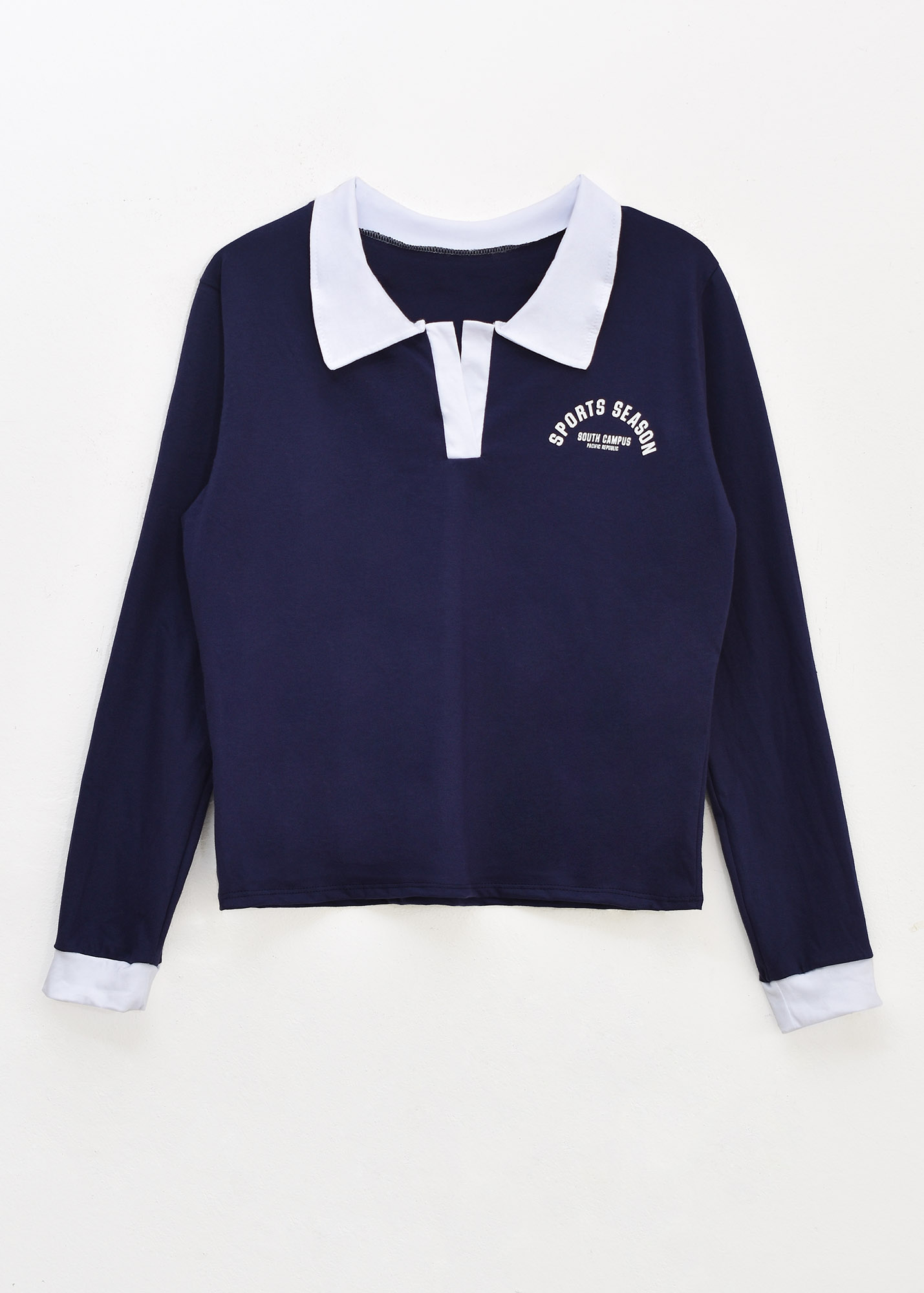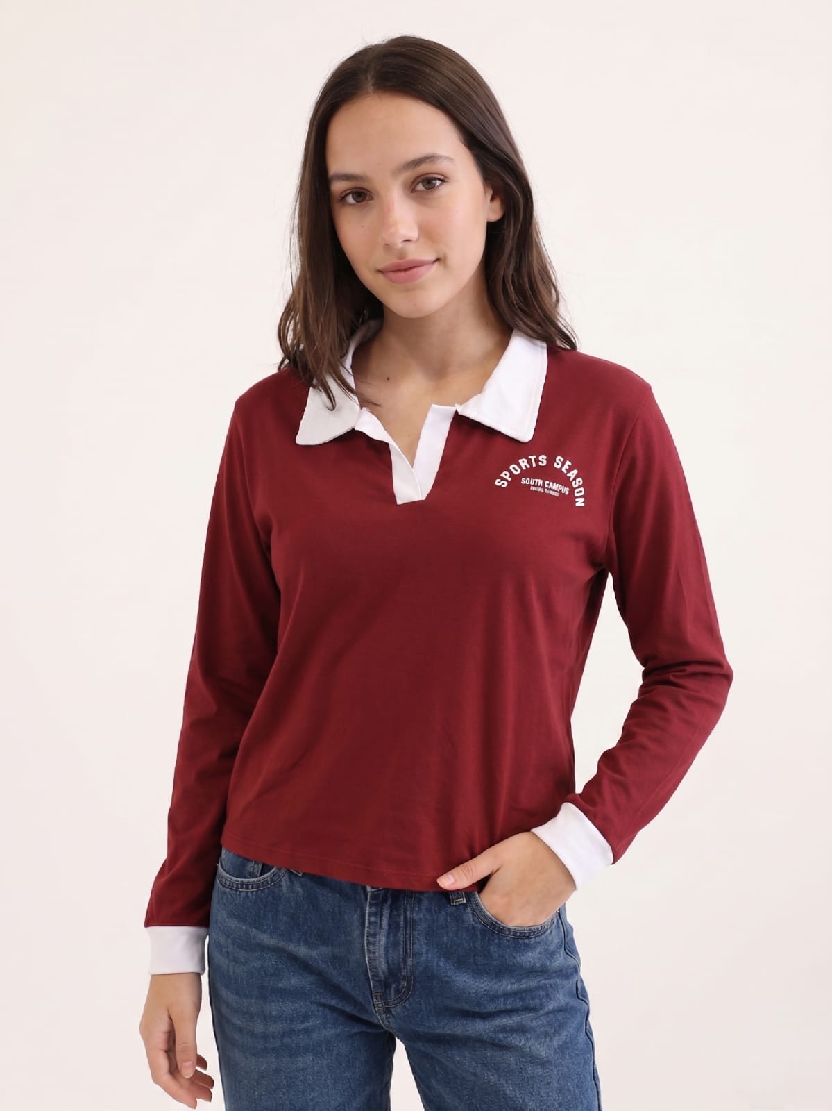 Chomba (jersey 30/1) con detalle de estampa, puño y cuello detalle de otro color