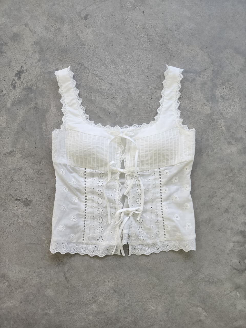 Top estilo corset confeccionado en broderie.