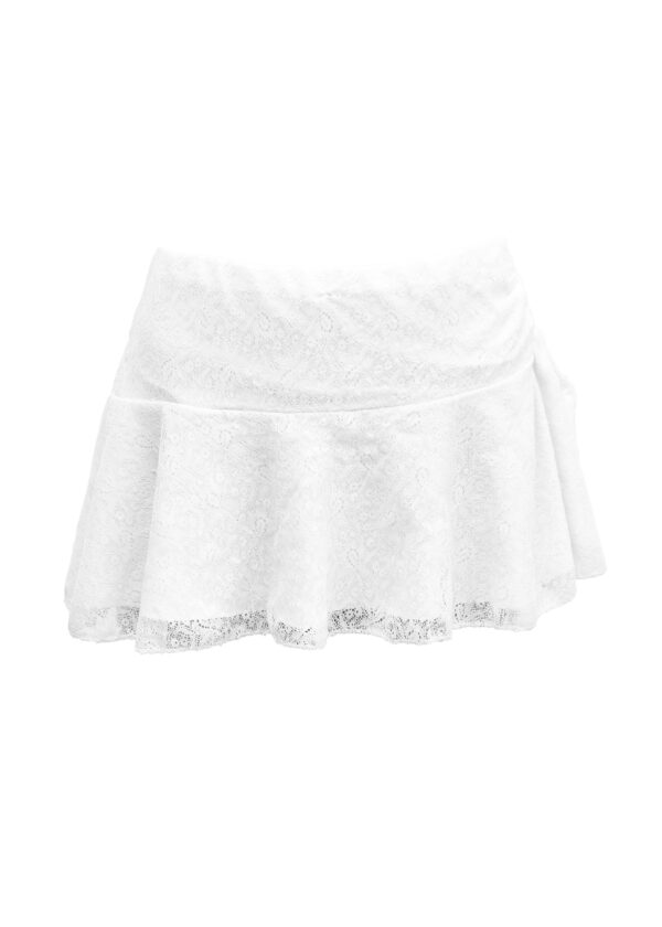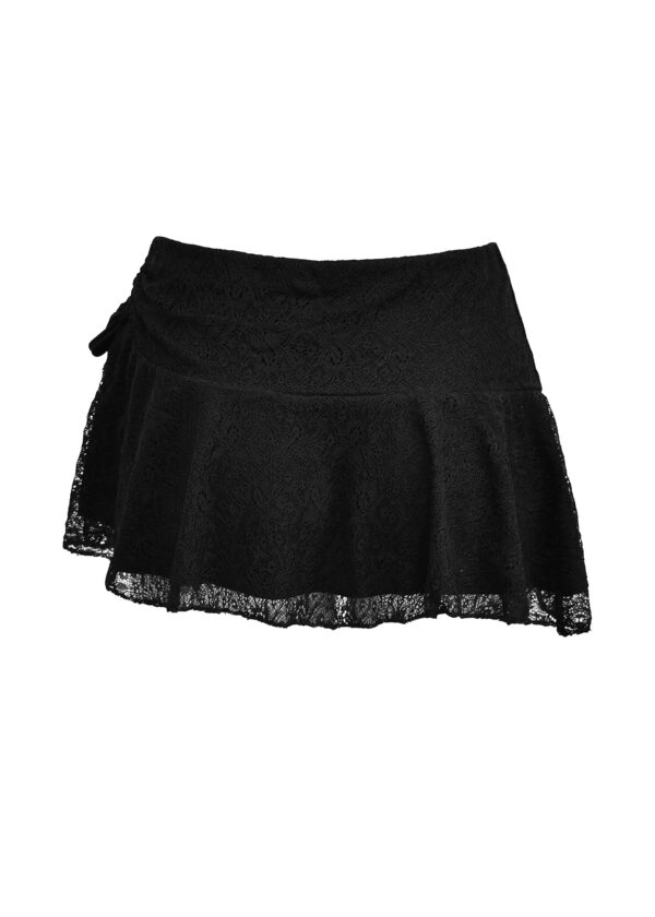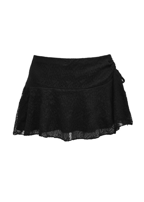 Mini semi asimétrico de encaje con detalle de frunce de un costado con tiras para ajustar