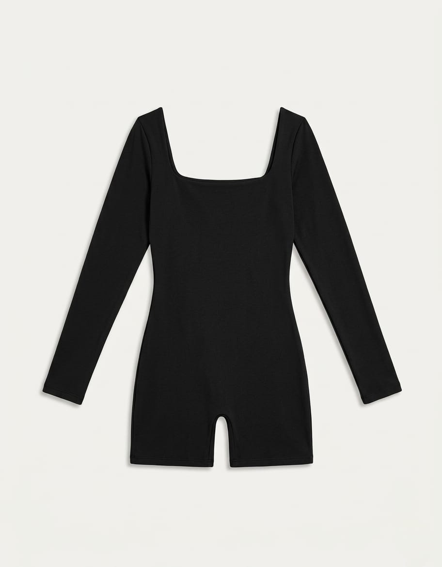 Mono manga larga con escote cuadrado y espalda descubierta. Tela: Microfibra Calzero