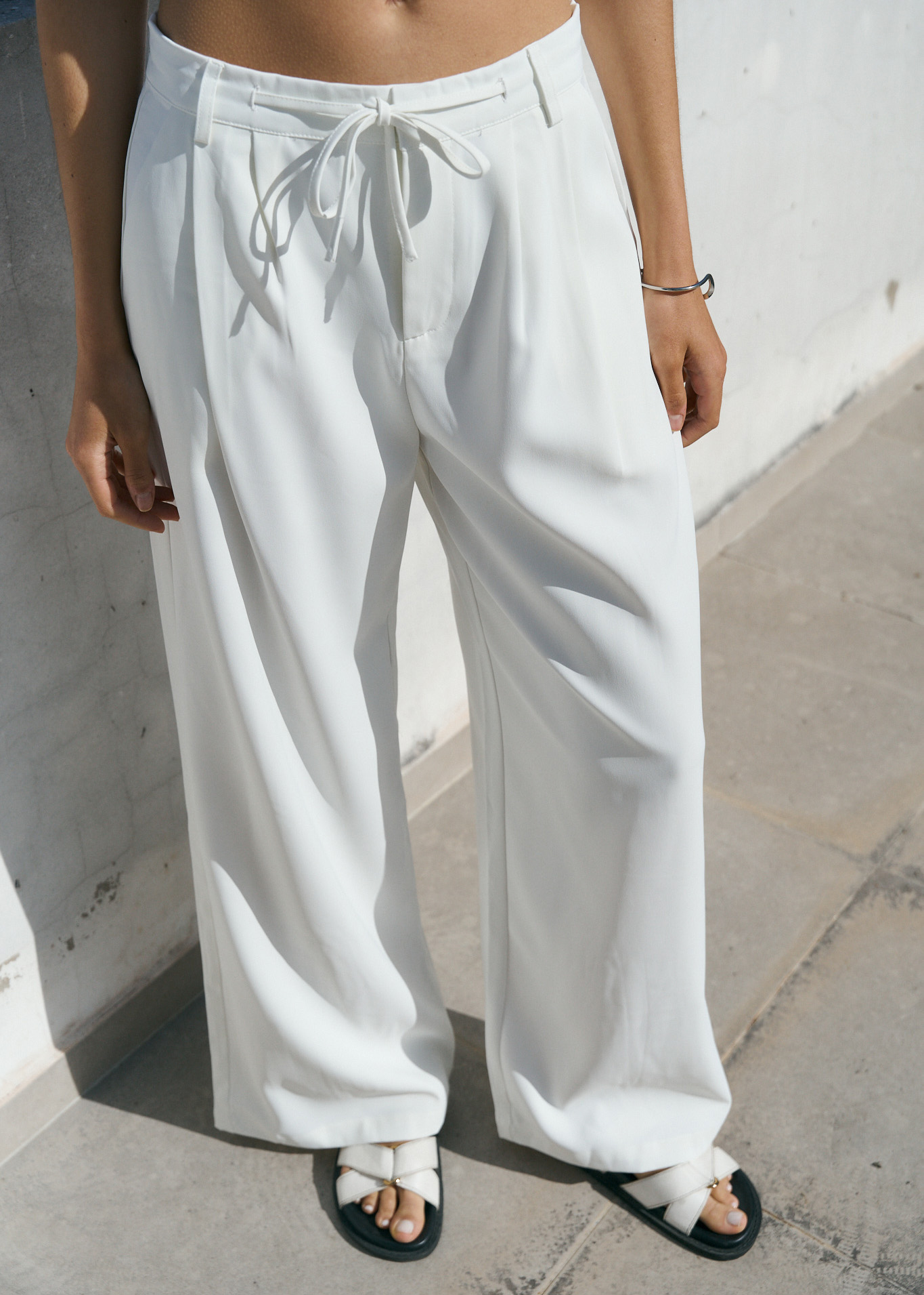 Pantalón sastrero wide leg tiro medio con doble pinza delantero, bolsillos reales laterales y detalle de tira para atar // MODELO IMPORTADO