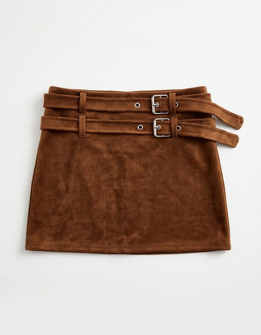 Pollera mini de tela suede (tipo gamuza) con hebillas