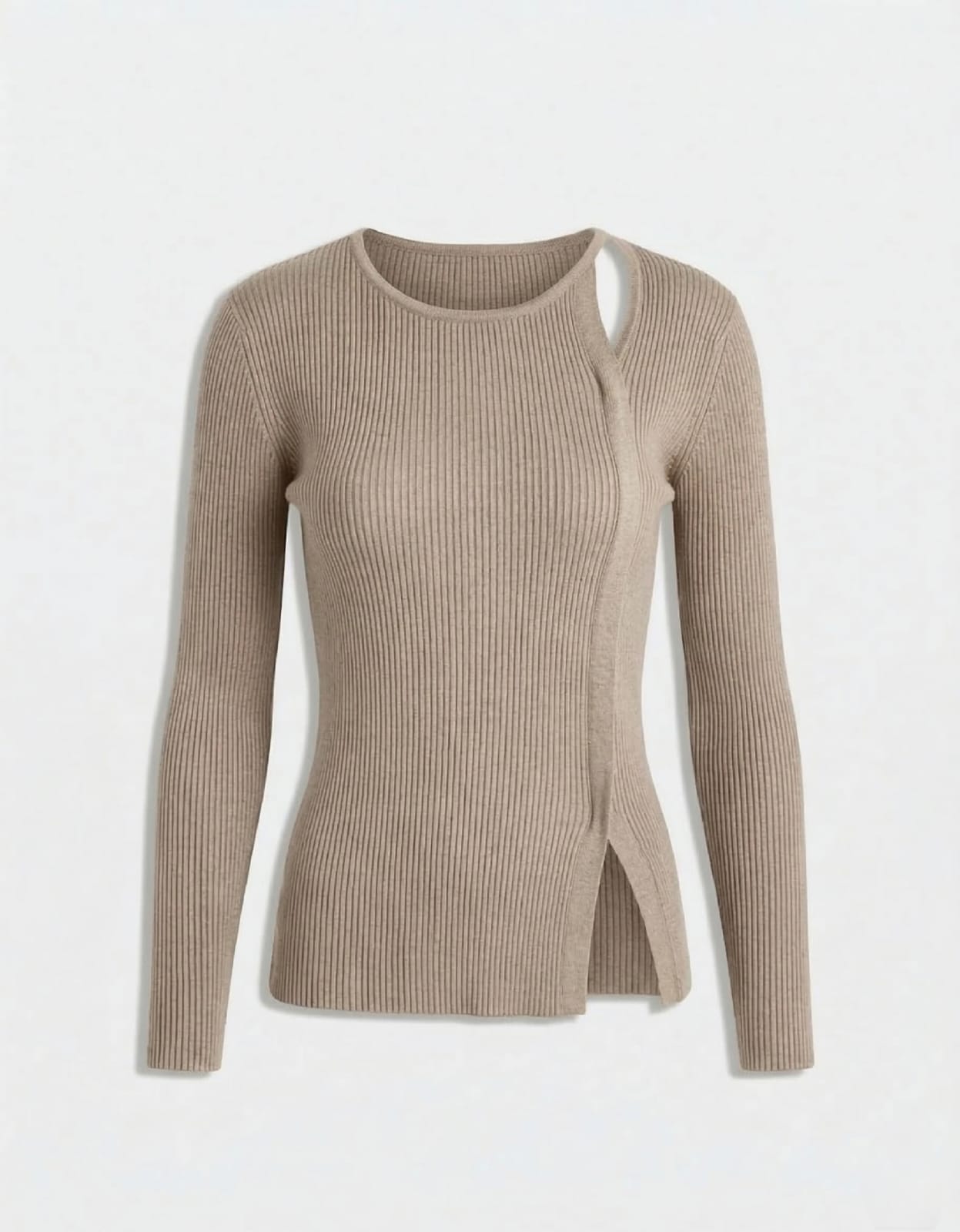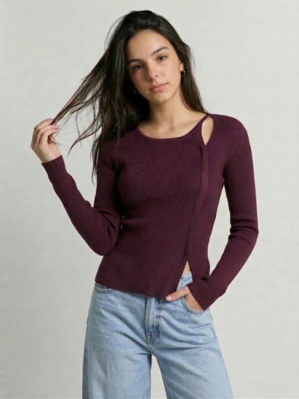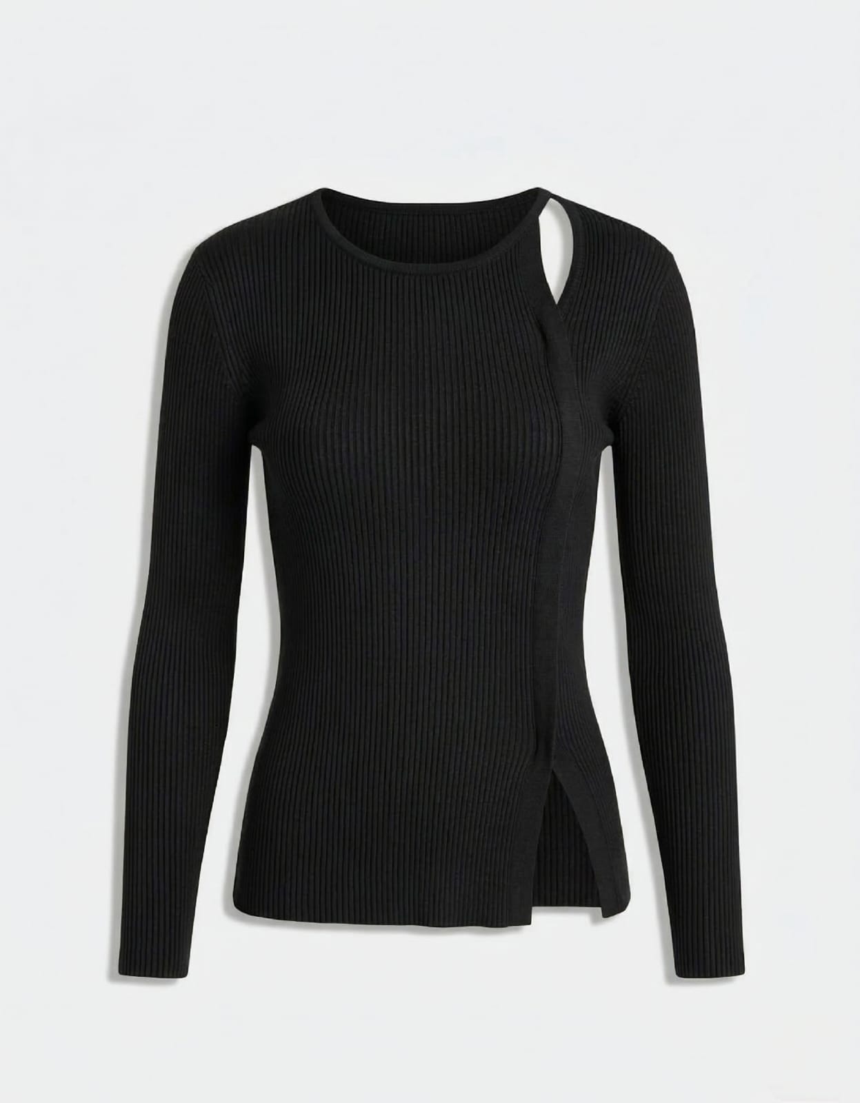 Remera manga larga con abertura en el hombro tela;52% Viscose, 22%Nylon, 28% PBT