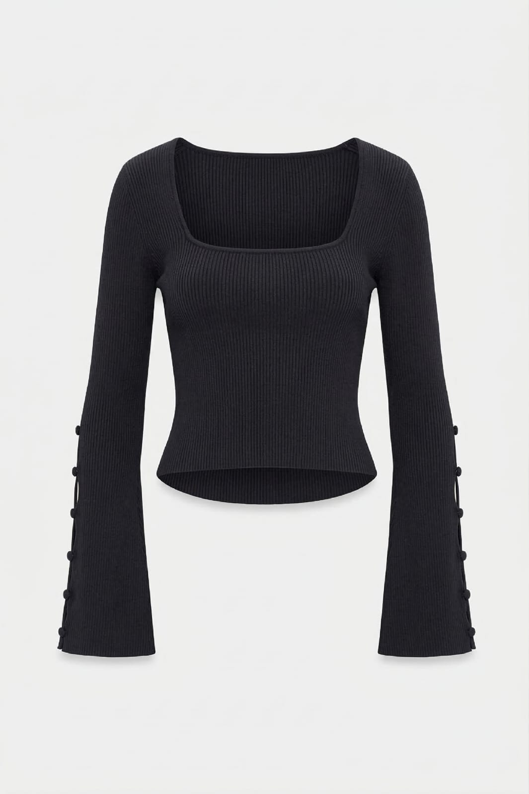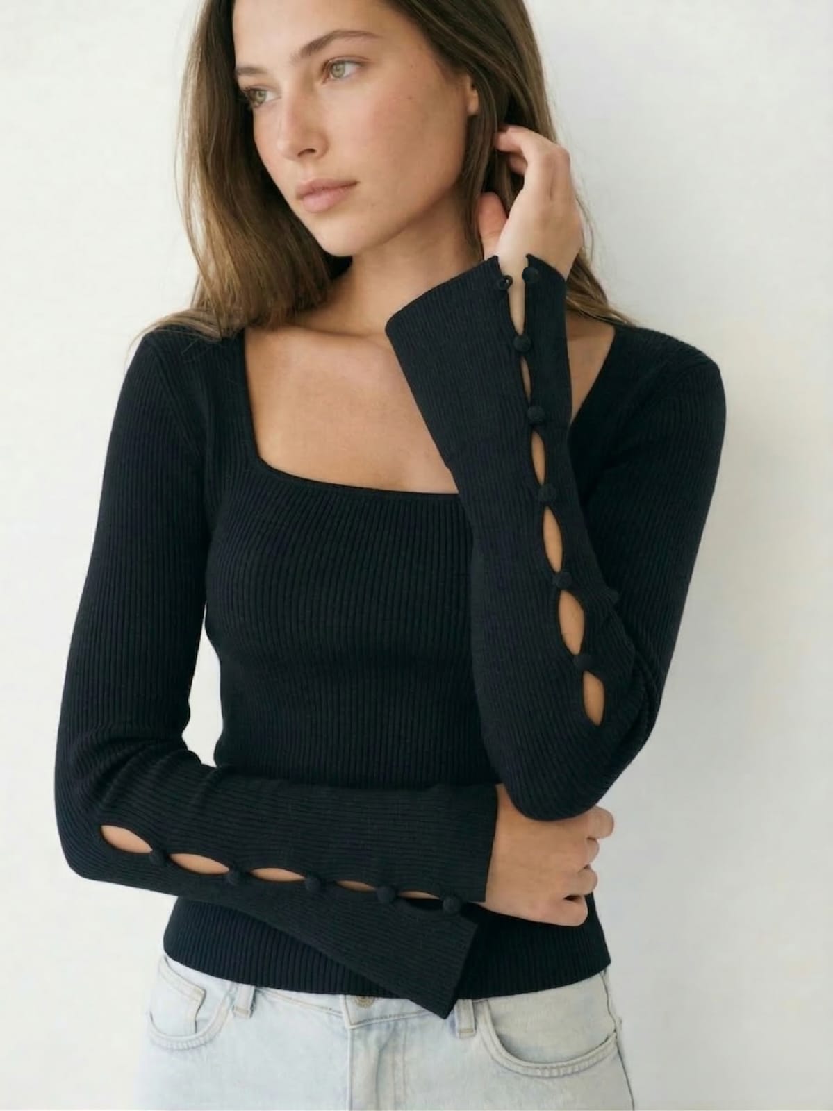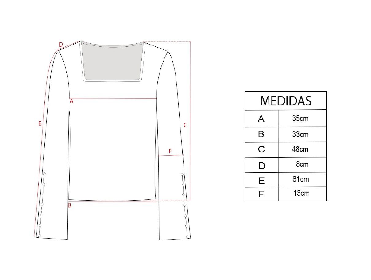 Remera manga larga con escote cuadrado y botones en las mangas