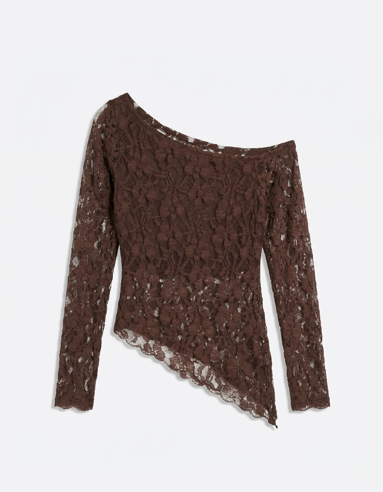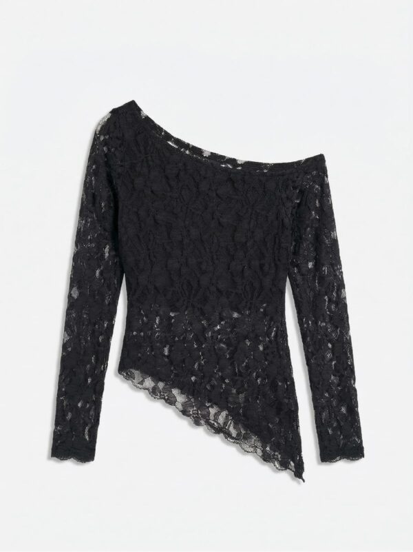 Remera manga larga de un hombro con detalle de pico y tela de encaje
