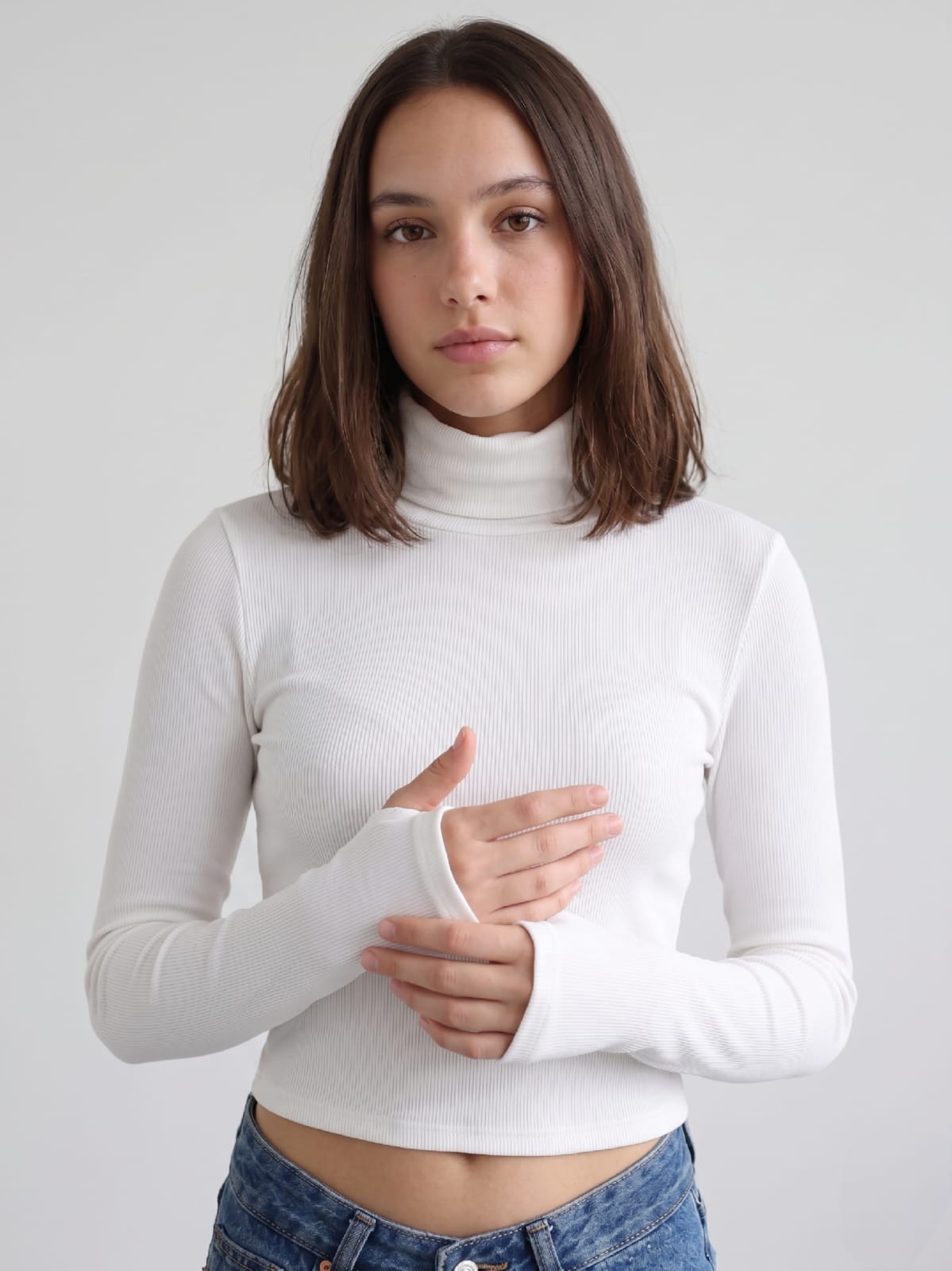 Remera manga larga (morley) con polera y detalle en el puño con porta dedo