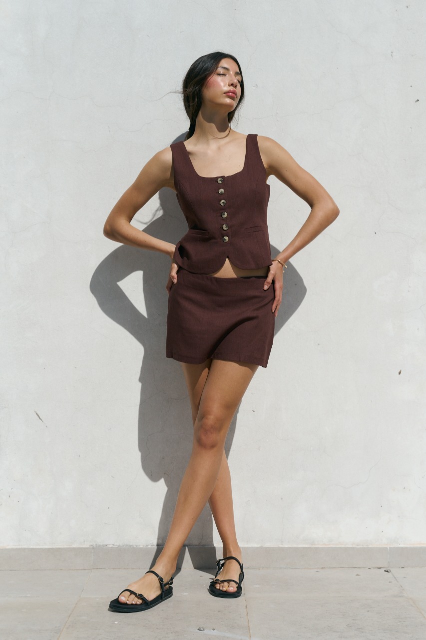 Skort (pollera/short) de lino de tiro medio con detalle de bolsillos simulados.