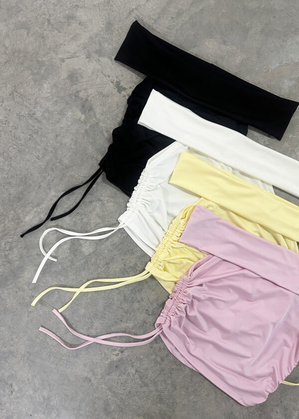Top bote de microfibra, con detalle de frunce laterales con tiras para ajustar
