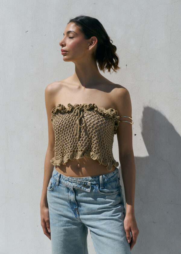 Top crochet con forro en el interior de la prenda, contiene tiras para ajustar // MODELO IMPORTADO}