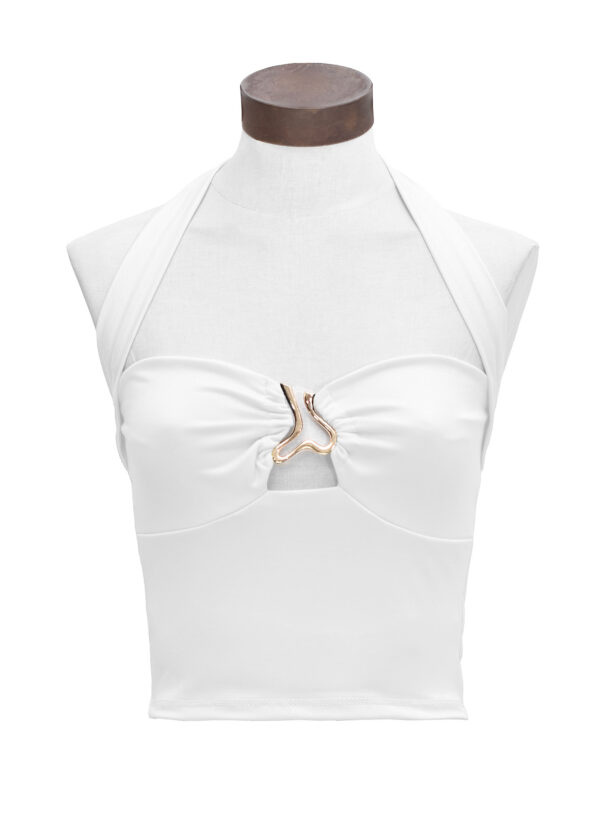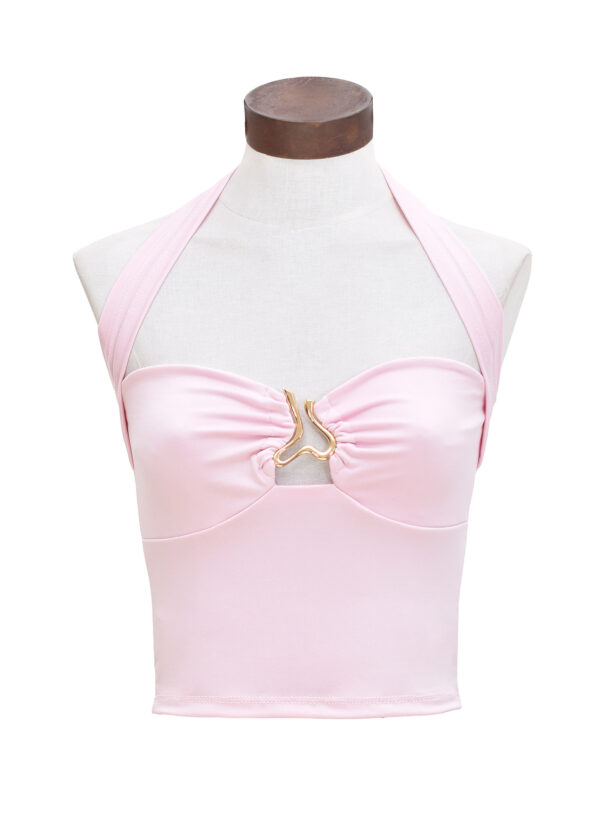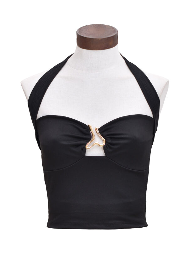 Top halter de microfibra con detalle de frunce en el busto y hebilla decorativa en la parte delantera