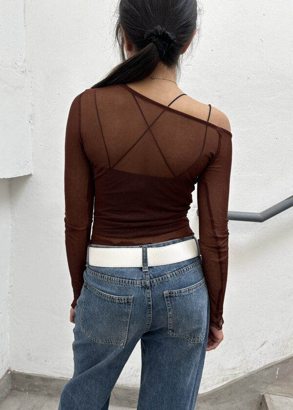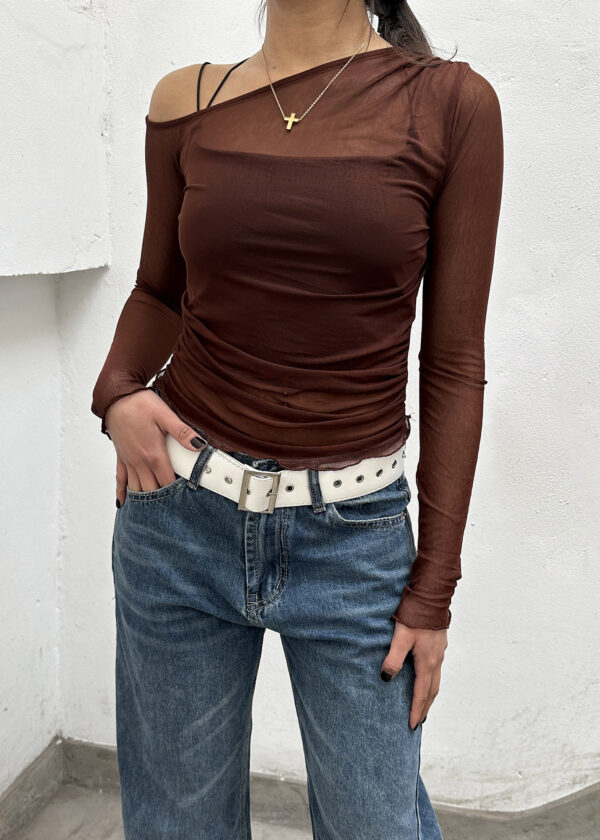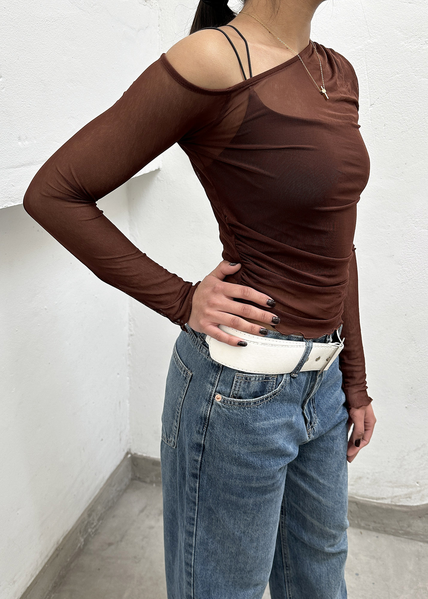 Top (tul) de manga larga asimétrico con detalle de frunce en los costados