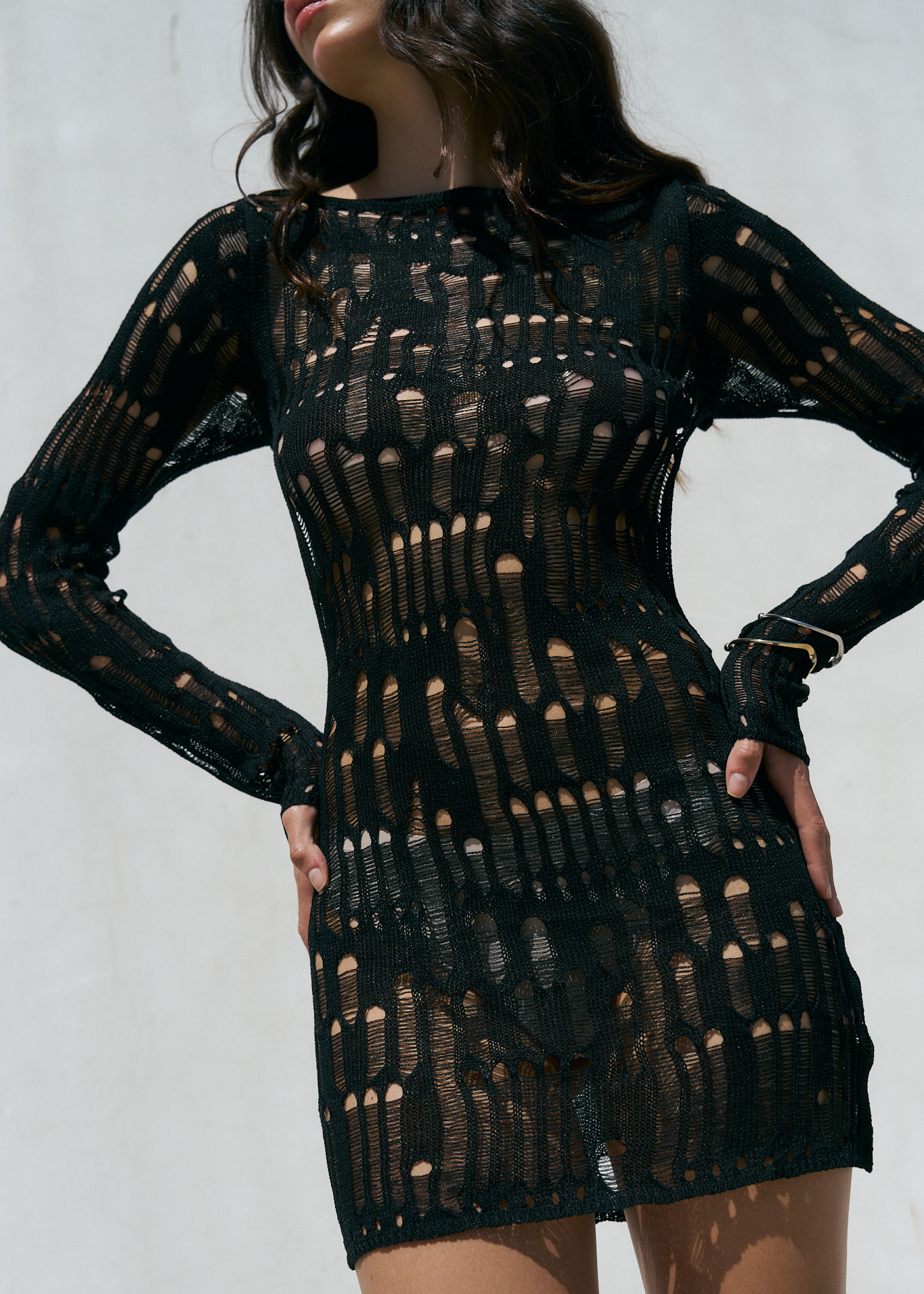 Vestido de crochet con escote en bote, espalda descubierta con doble tira regulables // MODELO IMPORTADO