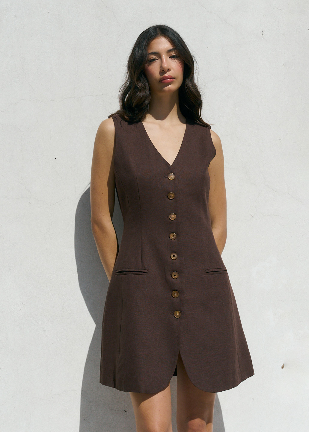 Vestido sastrero con pinza delantera, botones a tono, incluye forrería // MODELO IMPORTADO