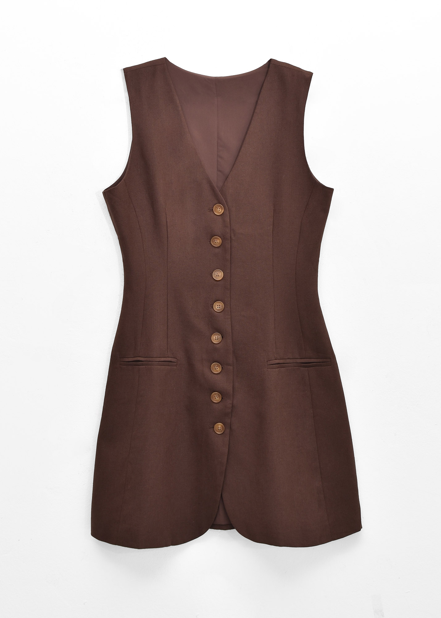 Vestido sastrero con pinza delantera, botones a tono, incluye forrería // MODELO IMPORTADO